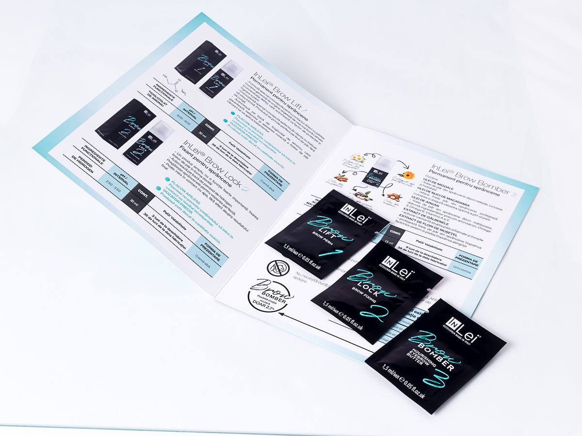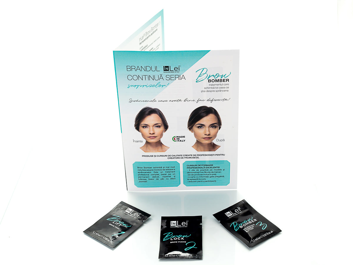 Dacă ați participat deja la cursuri profesionale de laminare sau styling sprâncene și folosiți produse de care nu mai sunteți mulțumit sau doriți să încercați un alt produs, InLei® Mini Kit Brow Bomber vă permite să testați singuri eficacitatea incredibilă a acestor produse. Bucurați-vă de spectacolul care are loc chiar în fața ochilor voștri. Doar cu InLei®, doar cu Brow Bomber!