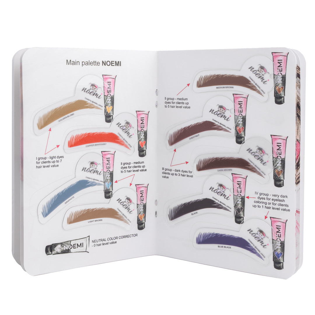 NOEMI Ghid Paletar de culori te ajuta sa intelegi perfect combinatiile de culori si mixuri Noemi Hybrid Dye si sa alegi dinainte culoarea perfecta pe care o vei prepara pentru clienta ta.